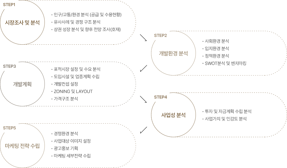 사업성을 검토하는 단계는 총5단계로 진행합니다.